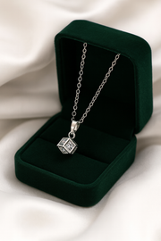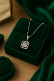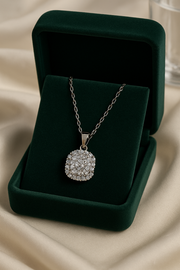 A dazzling cushion-cut pendant with layered brilliance, crafted for elegance in waterproof, anti-tarnish silver.