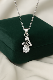A delicate butterfly perched atop a radiant crystal drop — a symbol of growth, femininity, and freedom. Crafted in waterproof, anti-tarnish silver.