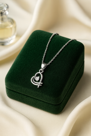 A radiant heart-shaped pendant with a brilliant center stone framed by a dazzling halo, built with waterproof, anti-tarnish craftsmanship.