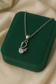 A graceful swan-shaped pendant featuring a luminous crystal accent — Swan Serenade captures elegance in motion with a waterproof, anti-tarnish silver finish.