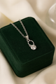 • A brilliant solitaire crystal suspended beneath a sleek, fluid loop design.